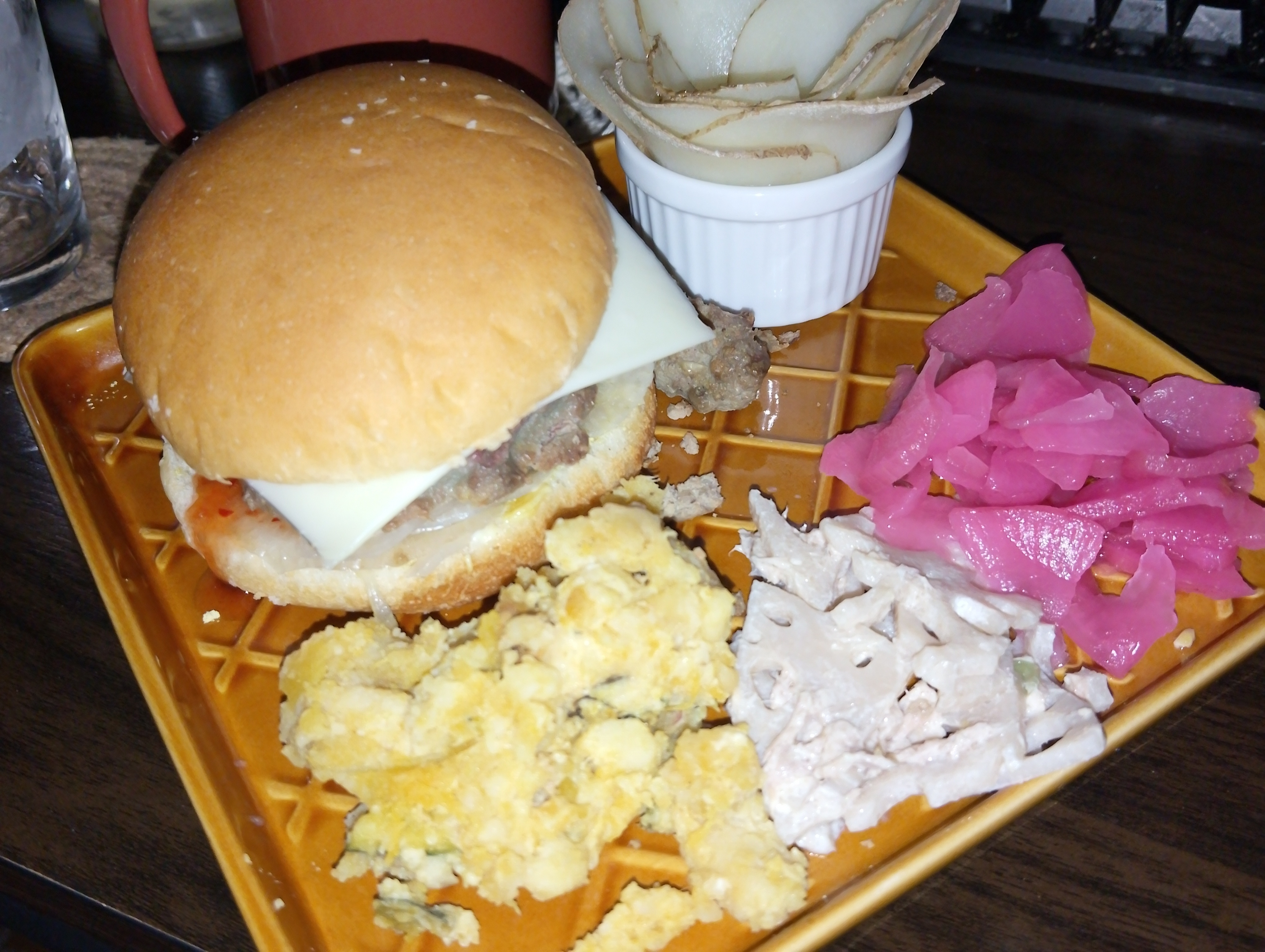トップ > フォトレポート > 今日のごはん > おからバーグのハンバーガー nado_kori 2025/10/07 20:55 おからバーグのハンバーガー 先日のおからバーグ、大漁に作っており〜 今夜は、ハンバーガー🍔 普通サイズだけど、晩酌のお供なのでナイフとフォークで頂きますっ 付け合せのポテト…は、薄切りしたものがまだ残ってたので、ひとまずローズポテサラにて。 夕飯はお酒も楽しみのひとつなので、あまり飲まないビールをジンジャーで割ってシャンディガフで乾杯っ いいね 共有する 共有する X facebook LINE リンクをコピー コメントする 1 件の返信 (新着順) ミュートしたユーザーの投稿です。 投稿を表示 SPICE&HERB COMMUNITY事務局 2025/10/09 14:59 nado_koriさん、こんにちは! おからバーグ、ヘルシーで美味しそうですね👀✨ 素敵なワンプレートです♪ いいね 返信する