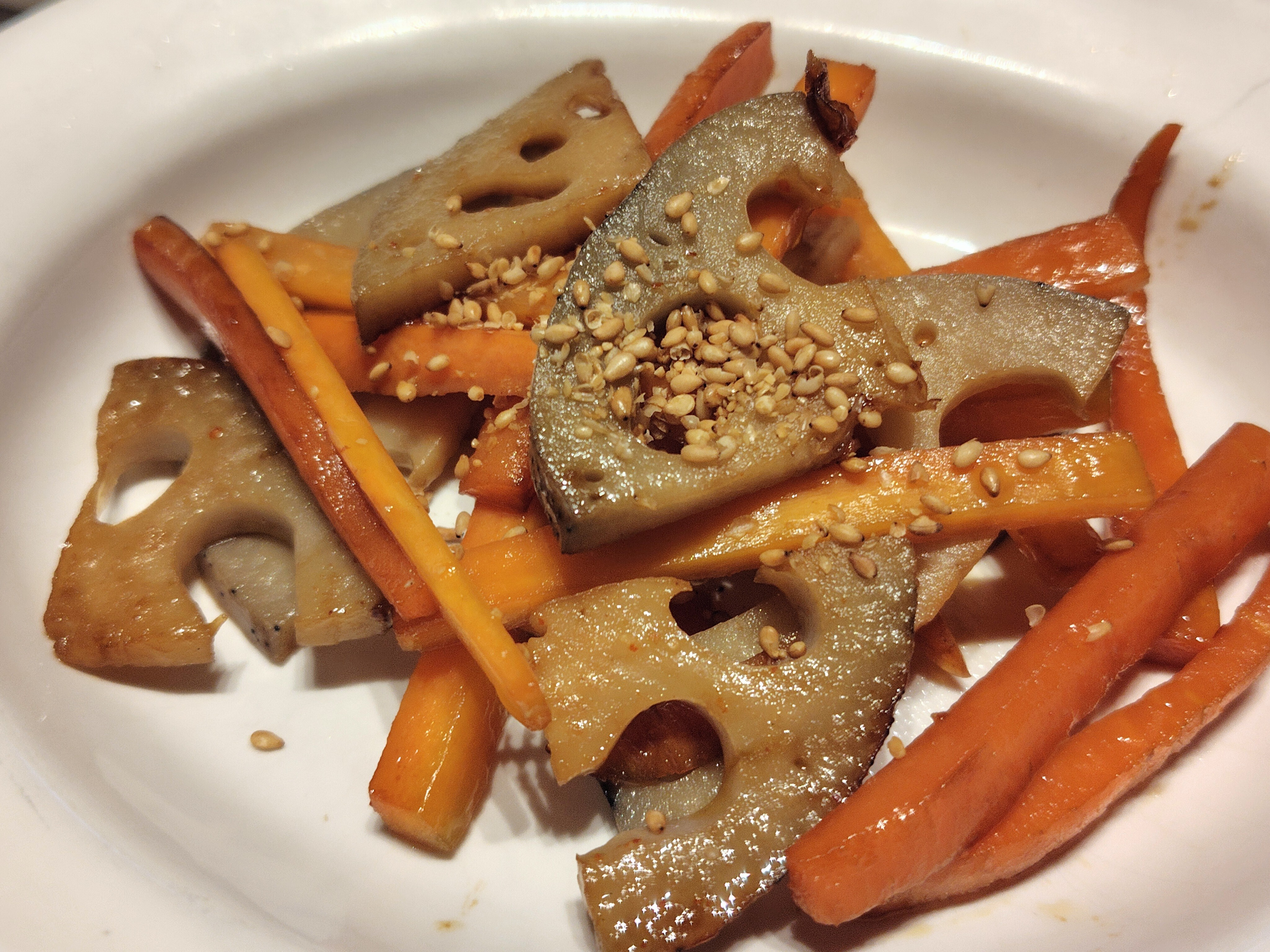 投稿を表示れんこんと人参のきんぴら、胡麻油の香りと唐辛子🌶️でピリ辛で美味しそうですネ✨️