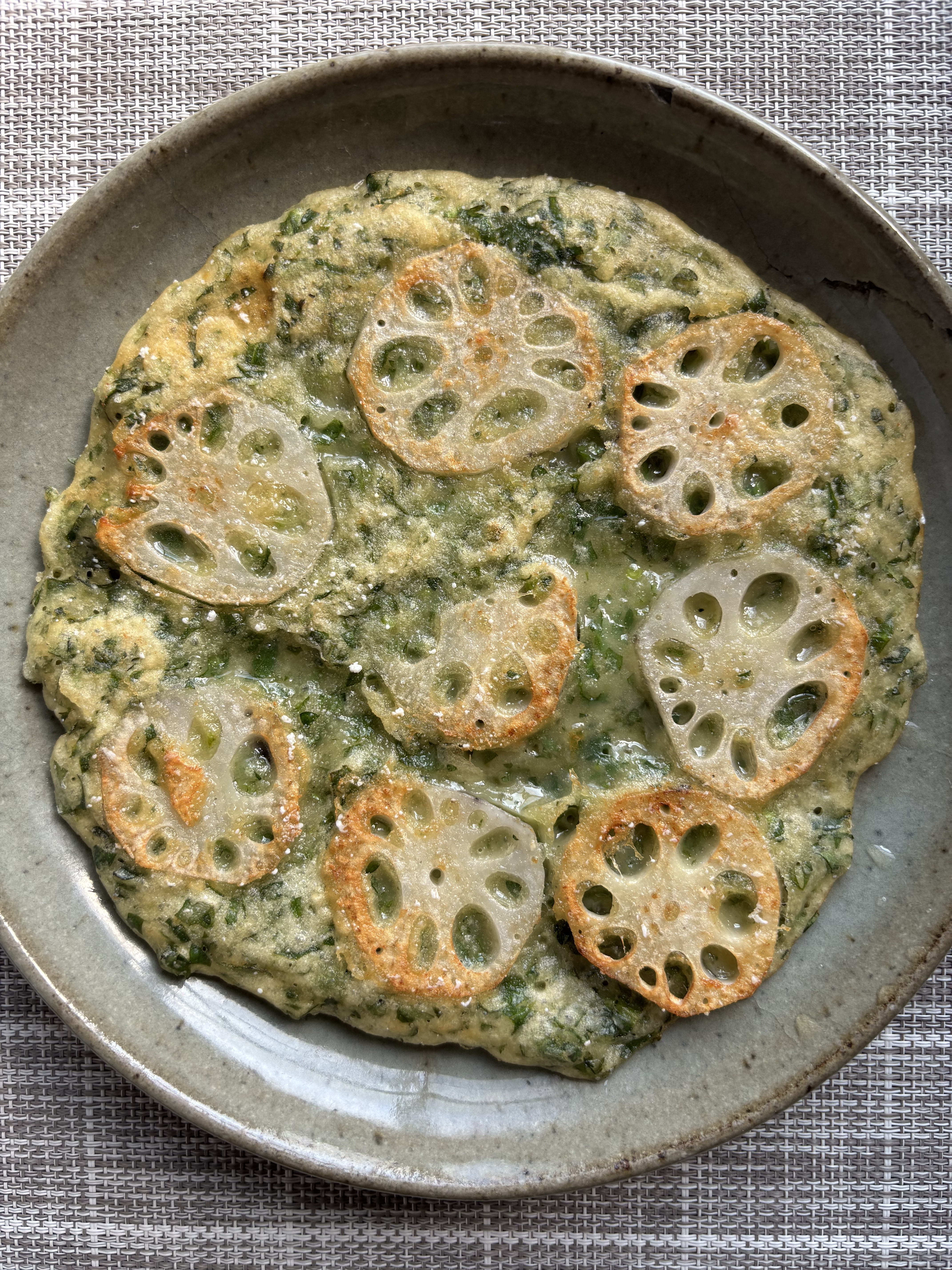 モチモチのチヂミとレンコンの食感が楽しいですね👀✨