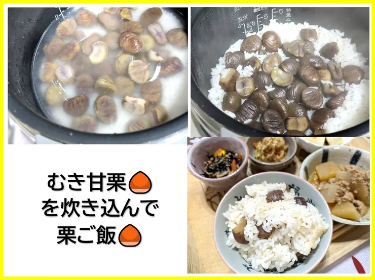 市販のむき甘栗をつかう栗ご飯、いいアイデアですね🥰