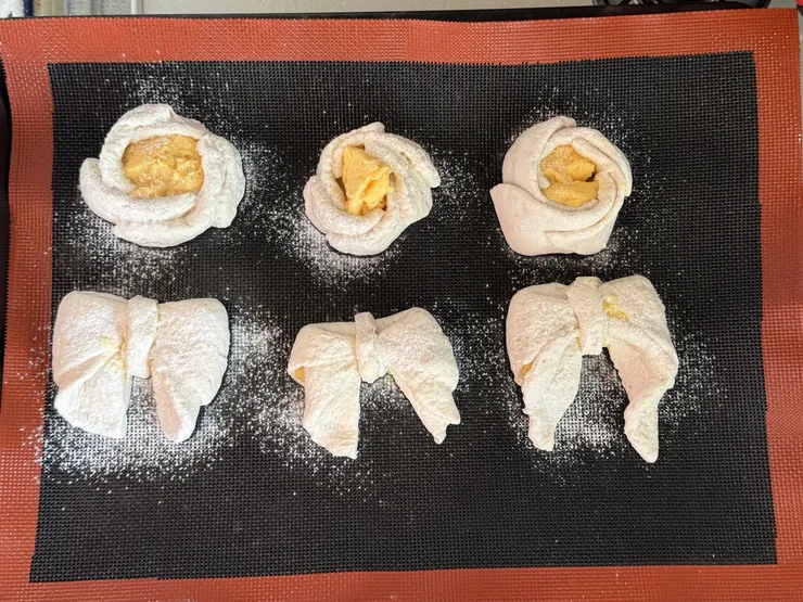 投稿を表示お花🌸とリボン🎀のパン、成形がとっても可愛いですネ〜✨️
