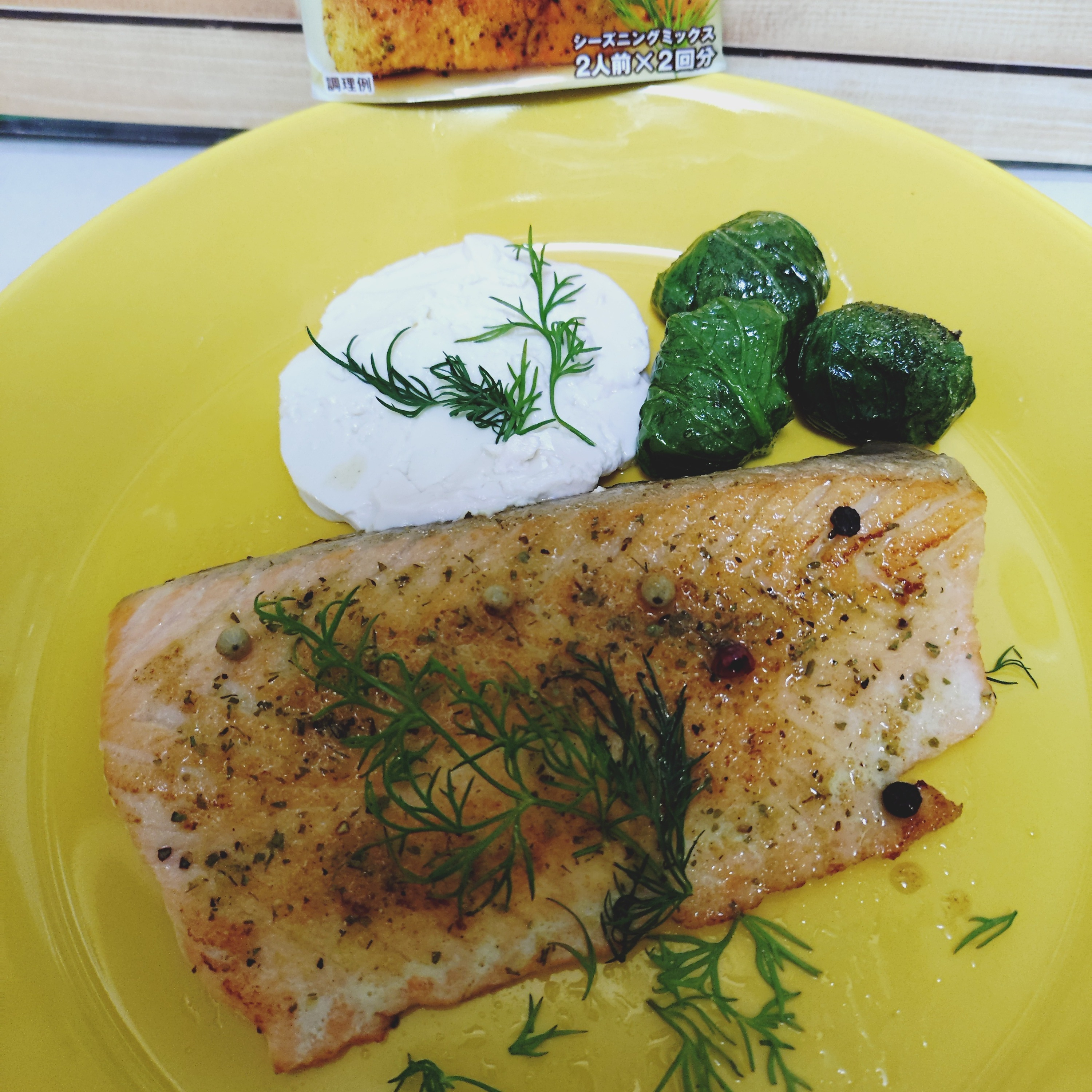 サーモンのハーブステーキにクリームチーズおいしい組み合わせですね