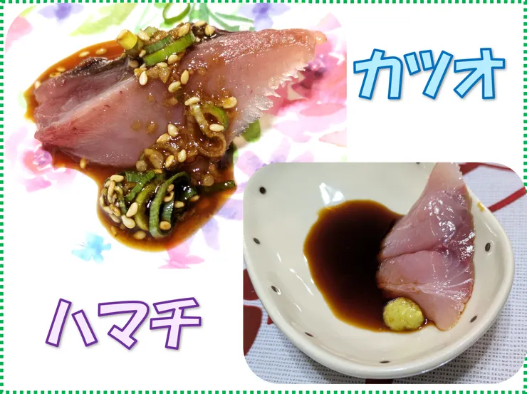 今晩の夕食はカツオとハマチのお刺身です🐟