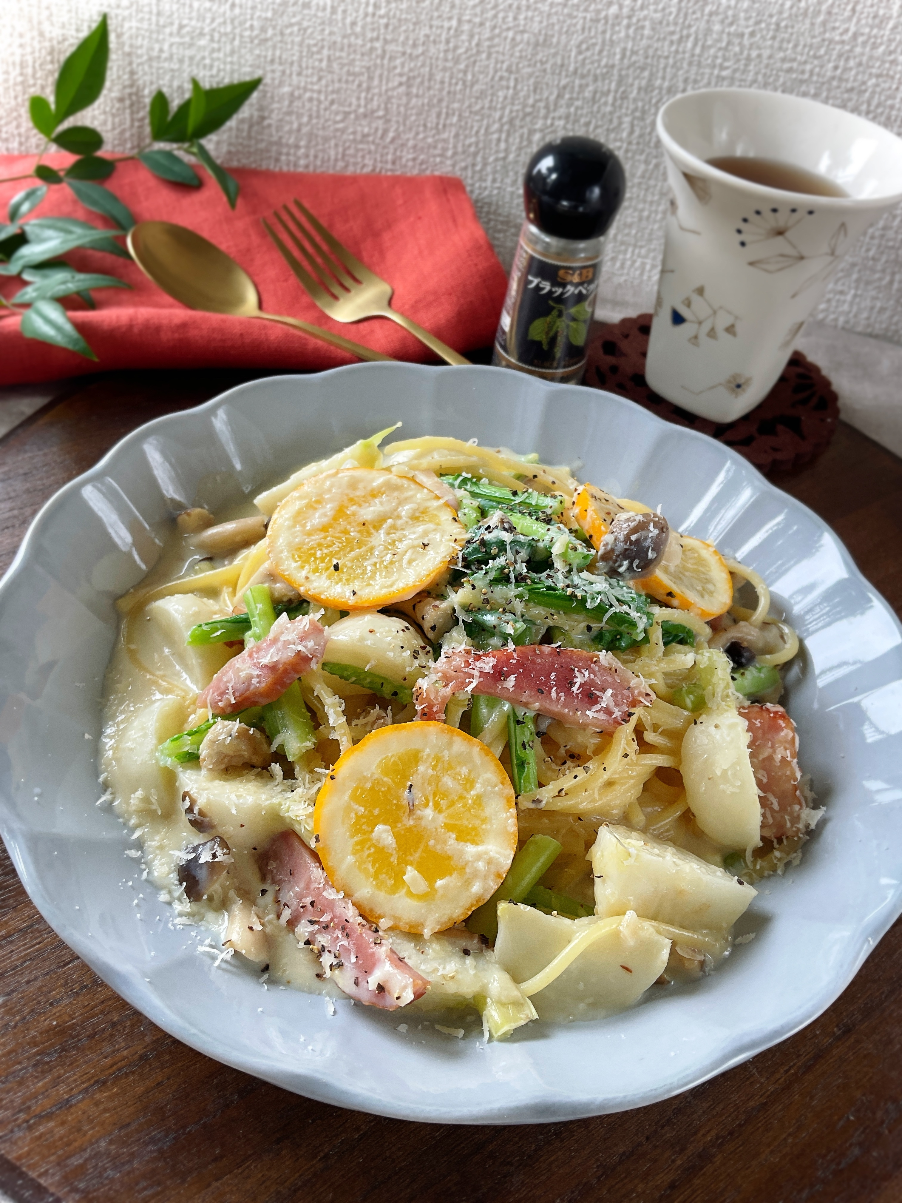 豆乳とレモンのパスタ、はぁ~ため息が出てしまうほど美味しそうですね♡