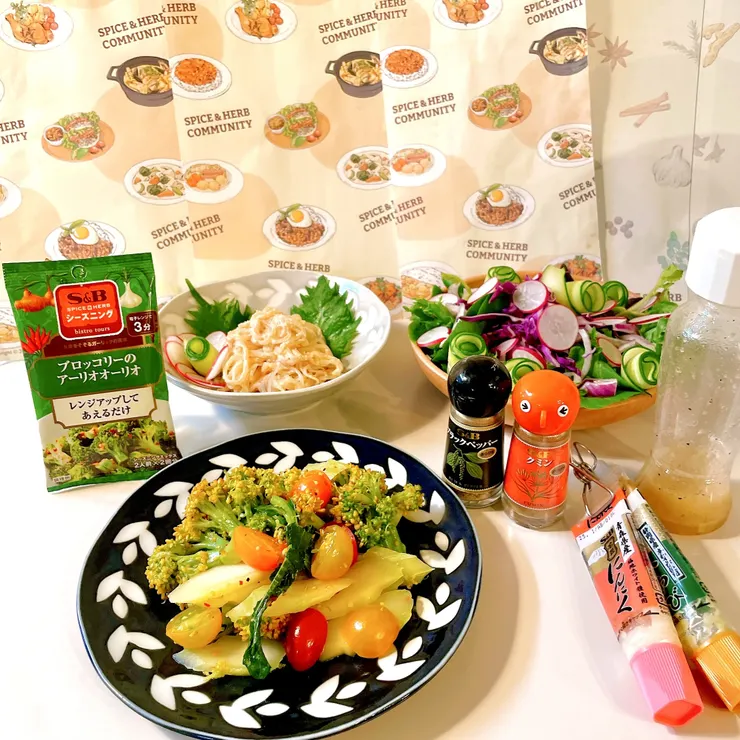 公式レシピのドレッシング&🟢エスビーシーズニング🔴「ブロッコリーのアーリオオーリオ」