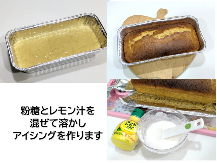 アイシングにもレモン果汁が入り食べるとレモンを感じるパウンドケーキとっても美味しそう