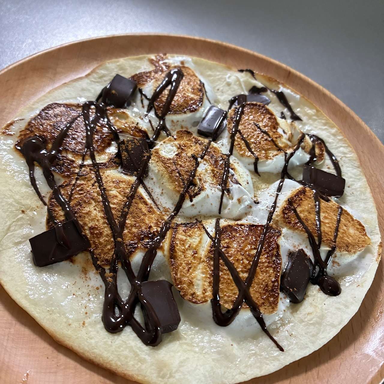 投稿を表示スモアトルティーヤ、トロトロでおいしそう。焼き色も素敵ですよ! シナモンの香りも楽しめてステキなおやつですね。