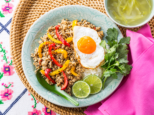 ナンプラーとオイスターソースのうま味とコクが豊かなガパオライスです。