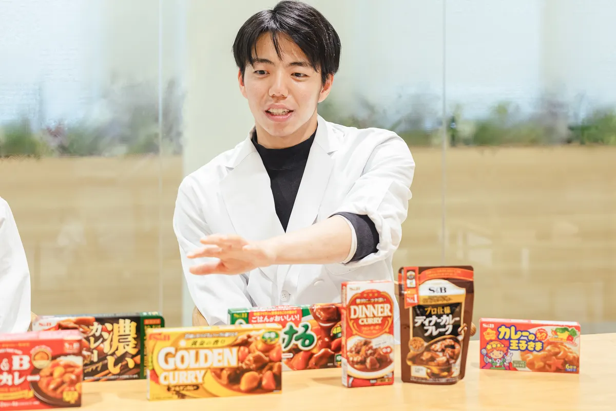 佐藤さん「1966年に発売した『ゴールデンカレー』は、インスタント(即席)に作れるカレールウが多いなか、“カレーらしいカレーを、高い質の中で実現する”というコンセプトのもと開発されました。35種類のスパイスとハーブを使った、本格的な香りと深いコクが特徴です。発売以来、多くのお客さまに愛され続けており、代々大切に育ててきた社員みんなにとって思い入れの深いブランドなので、今回の新商品開発も先輩である担当者を筆頭に即席チームが一丸となって取り組みました。『ゴールデンカレー』を特徴づける豊かな香りがさらに華やかにパワーアップしているので、ぜひ皆さんに試してみてほしいです!」