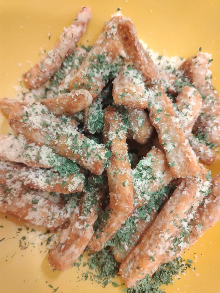 ③②に粉チーズとパセリをまぶして完成。