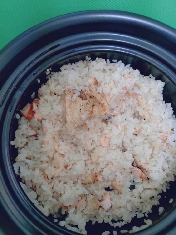 ローズマリーの良い香りが漂うサーモンの炊き込みご飯の出来上がり〜