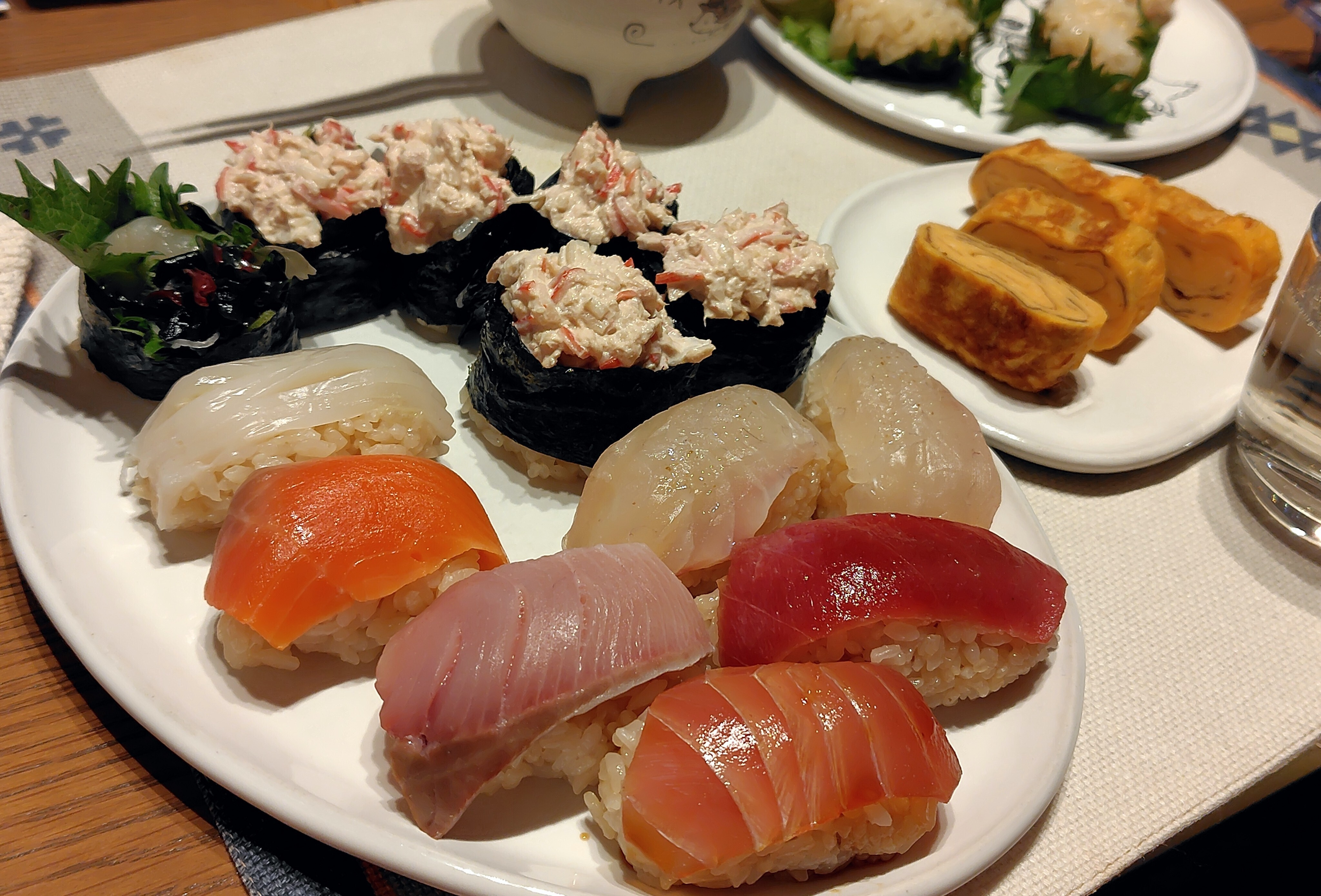 本格的な握り寿司、形も種類も軍艦巻きでしかも玉子焼き