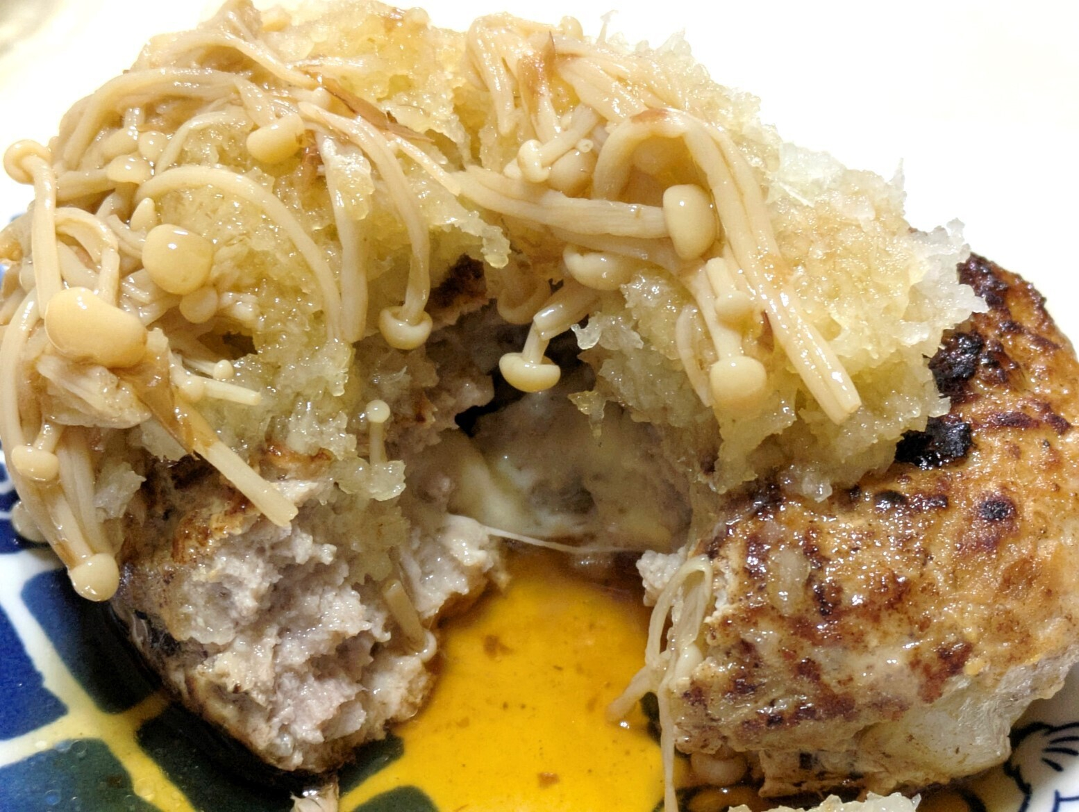 チーズinハンバーグにおろしとえのきの佃煮でとっても美味しそう〜🤤