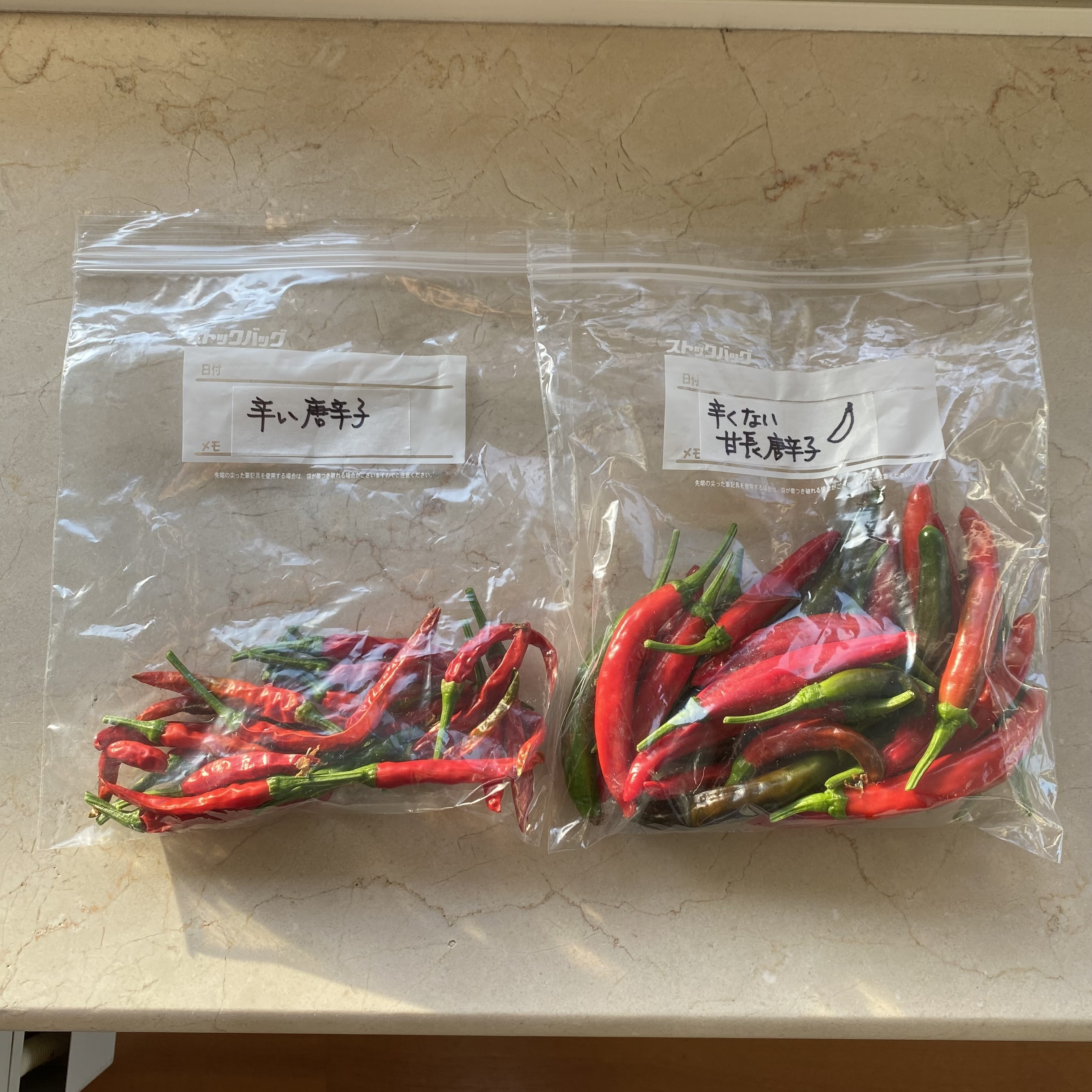 「辛くならない甘長唐辛子」はほぼ摘み取ったけど「たくさん採れる鷹の爪」はまだまだある‼️