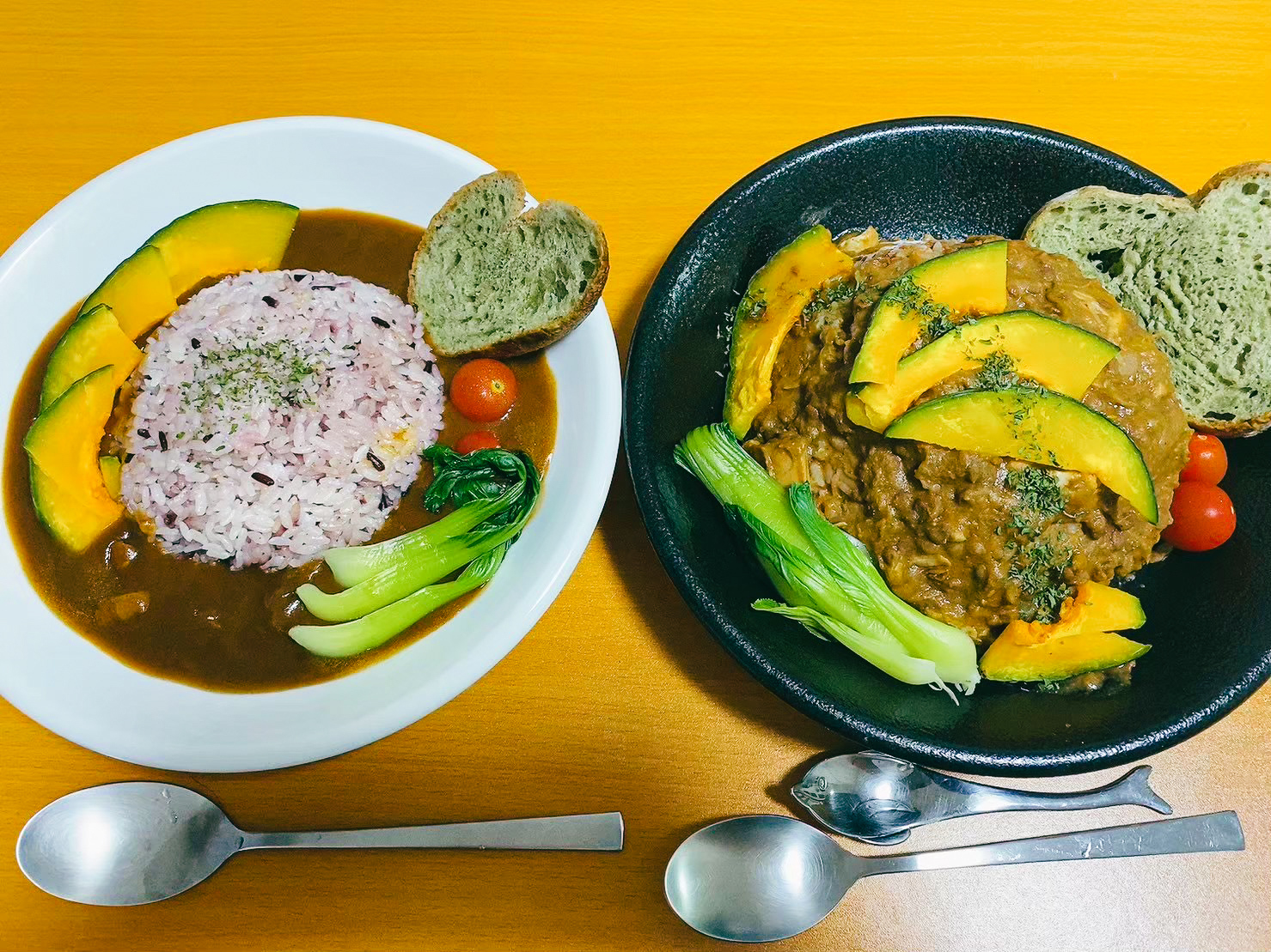 投稿を表示カレー対決、面白いですね。両方ともとてもきれいでおいしそう! 両者ともに優勝ですね。