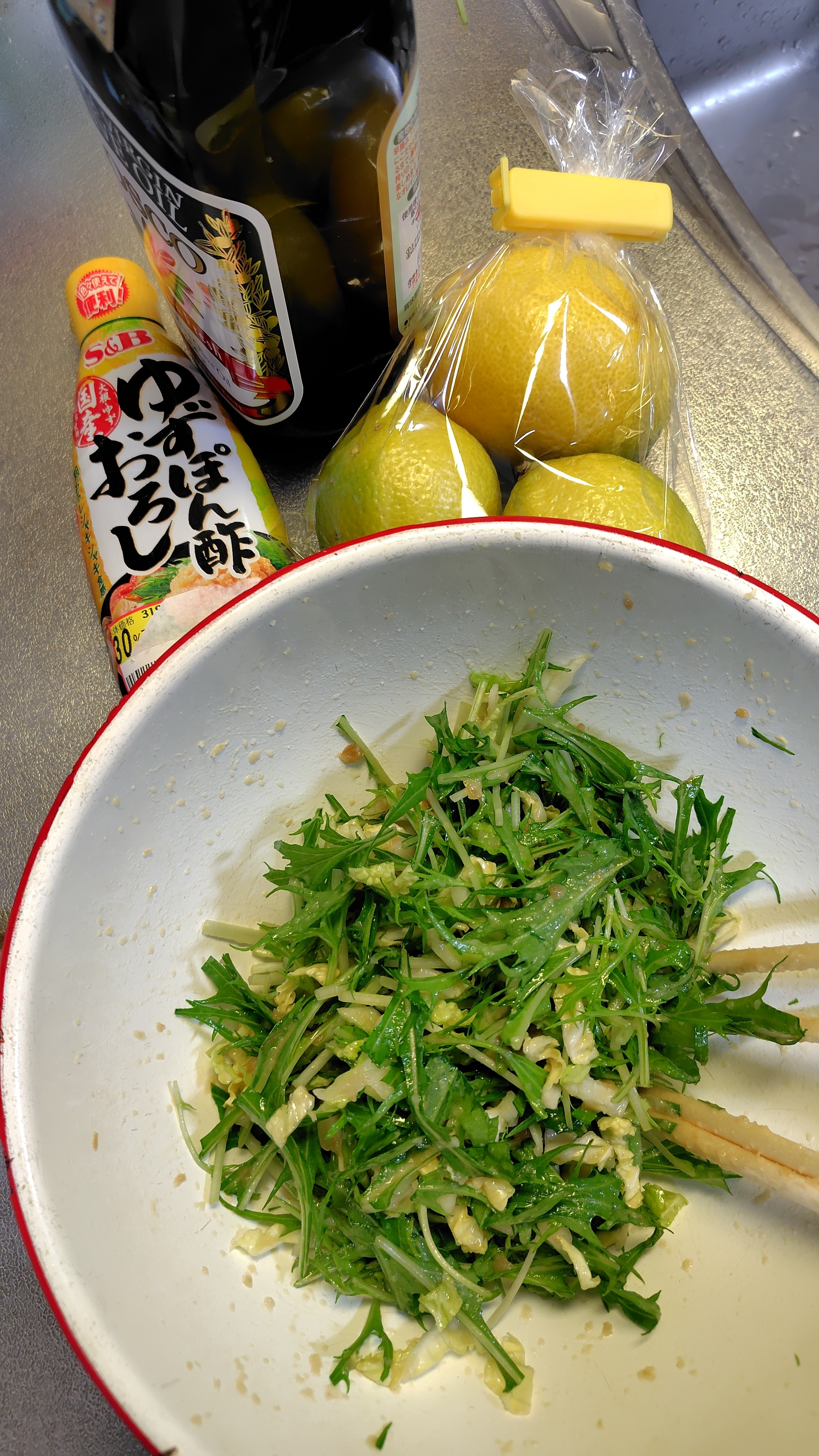 ゆずぽん酢おろしをつかったドレッシング、白菜と水菜のサラダに合いそうですね♪