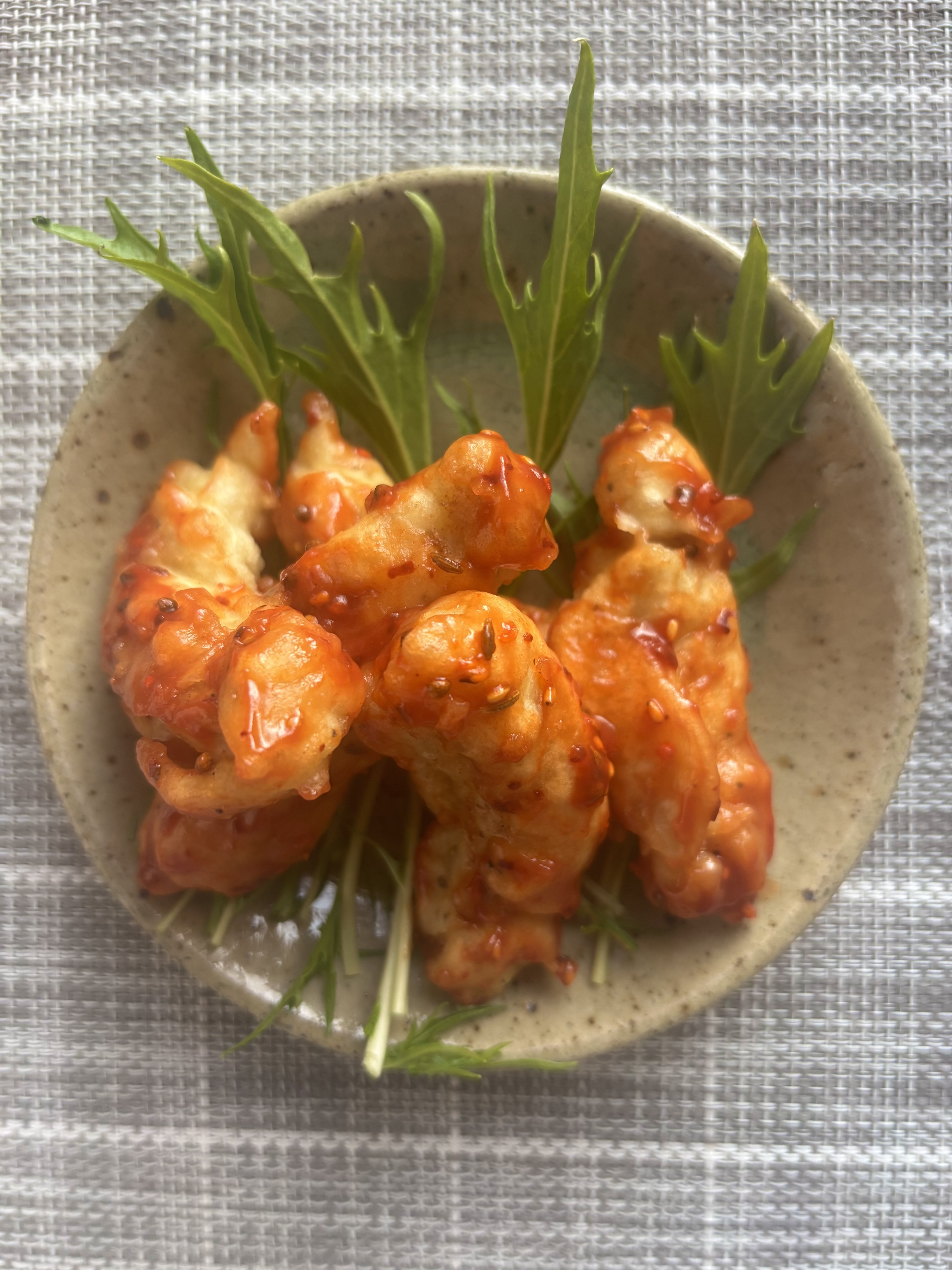 トップ > フォトレポート > ちょい足しアレンジ > ヤンニョム豚天 tochi 2026/01/18 09:00 ヤンニョム豚天 豚ロース肉1枚、塩胡椒適量、ケチャップ適量、シラチャーソース適量、小麦粉適量、コチジャン適量豚ロース肉を切って塩胡椒をまぶす。小麦粉を水で溶いて豚ロース肉に付け、天ぷらにする。ケチャップとシラチャーソース、コチジャンを混ぜた所に豚天を入れて混ぜ合わせて完成。豚肉でヤンニョム豚天。 いいね 共有する 共有する X facebook LINE リンクをコピー コメントする 1 件の返信 (新着順) ミュートしたユーザーの投稿です。 投稿を表示 SPICE&HERB COMMUNITY事務局 2026/01/20 11:23 tochiさん、こんにちは! 甘辛い味わいがたまりませんね♪ とっても美味しそうです👀✨ いいね 返信する ミュートしたユーザーの投稿です。 投稿を表示 tochi 2026/01/24 13:14 SPICE&HERB COMMUNITY事務局 こんにちは。 豚肉と辛さを変えたアレンジヤンニョムです^_^ いいね 返信する