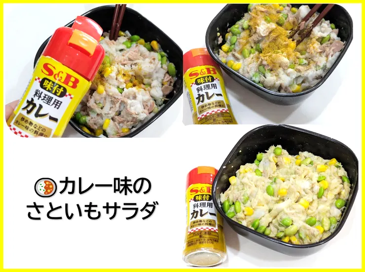 さといもの粘りと、シーチキンの旨味が絡み合って、そこにマヨネーズやカレー粉、ブラックペッパー、オレガノ等々で味を調えるとアレンジも効いてGOODですよー🥗