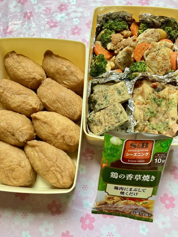 お弁当の一品に【S&Bシーズニング 鶏の香草焼き】を使って、鶏肉とじゃがいも🥔・人参🥕・ブロッコリー🥦を焼いてみました👩🍳