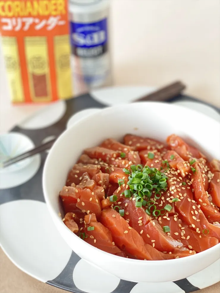 【サーモンの漬け丼~コリアンダー醤油風味(宮城県)】