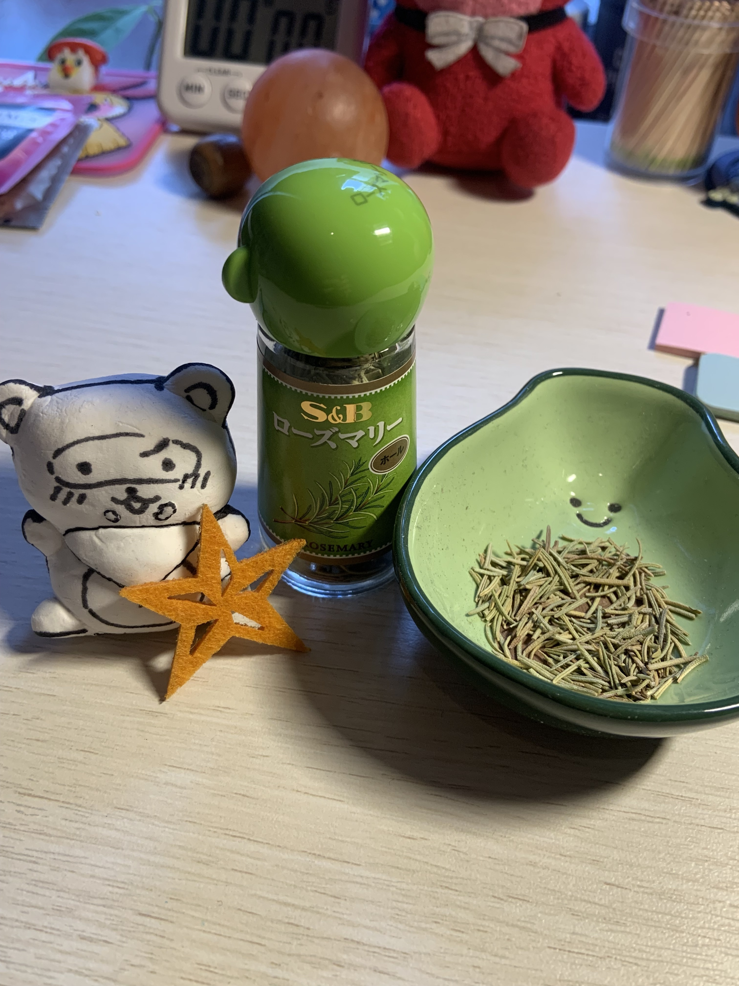 トップ > フォトレポート > スパイス&ハーブ > ローズマリー🌿🦑 北極スパイス🌟marr 2026/03/15 16:25 ローズマリー🌿🦑 【S&B ローズマリー(ホール)】🌿 鶏肉、ポテトなんかを焼くときはベランダからフレッシュもいで使いますが こちらのドライホールは煮込みやハーブティーなんかで活躍しますね☺️🌿 ササッと使えるので便利ですな ローズマリー ローズマリー 🦑 イカ先生 いいね 共有する 共有する X facebook LINE リンクをコピー ローズマリー スキッとした独特の強い香りをもち、羊肉、豚肉、イワシやサバなどクセの強い素材の臭み消しに役立つ一方、鶏肉、じゃがいもなど淡白な素材の風味づけにも活躍します。トマトやニンニクなどとも好相性。パンや菓子、ドリンクの香りのアクセントとしても用いられます。フレッシュのローズマリーは、オイルやビネガーに漬け込み、香りを移して楽しむのもおすすめです。 詳細を見る コメントする 1 件の返信 (新着順) ミュートしたユーザーの投稿です。 投稿を表示 おさかな公爵 2026/03/15 17:19 北極スパイス🌟marr様 まさか いかさんぬいぐるみ だったとは 予想だにしなかった展開 そして 👓️をかけてはいない 謎の新たなるいかさん Storyはいかに 進捗するのであろうか むむっ 🎵「・・・ 時に人は傷付き、 傷付けながら 染まる色はそれぞれ違うケド 自分だけのStory 作りながら生きてくの だからずっと(ずっと)、 ずっと(ずっと) あきらめないで... 一人じゃないから 私がキミを守るから あなたの笑う 顔が見たいと思うから 時がなだめてく(yes) 痛みと共に流れてく 日の光がやさしく 照らしてくれる...」🎶 いいね 返信する