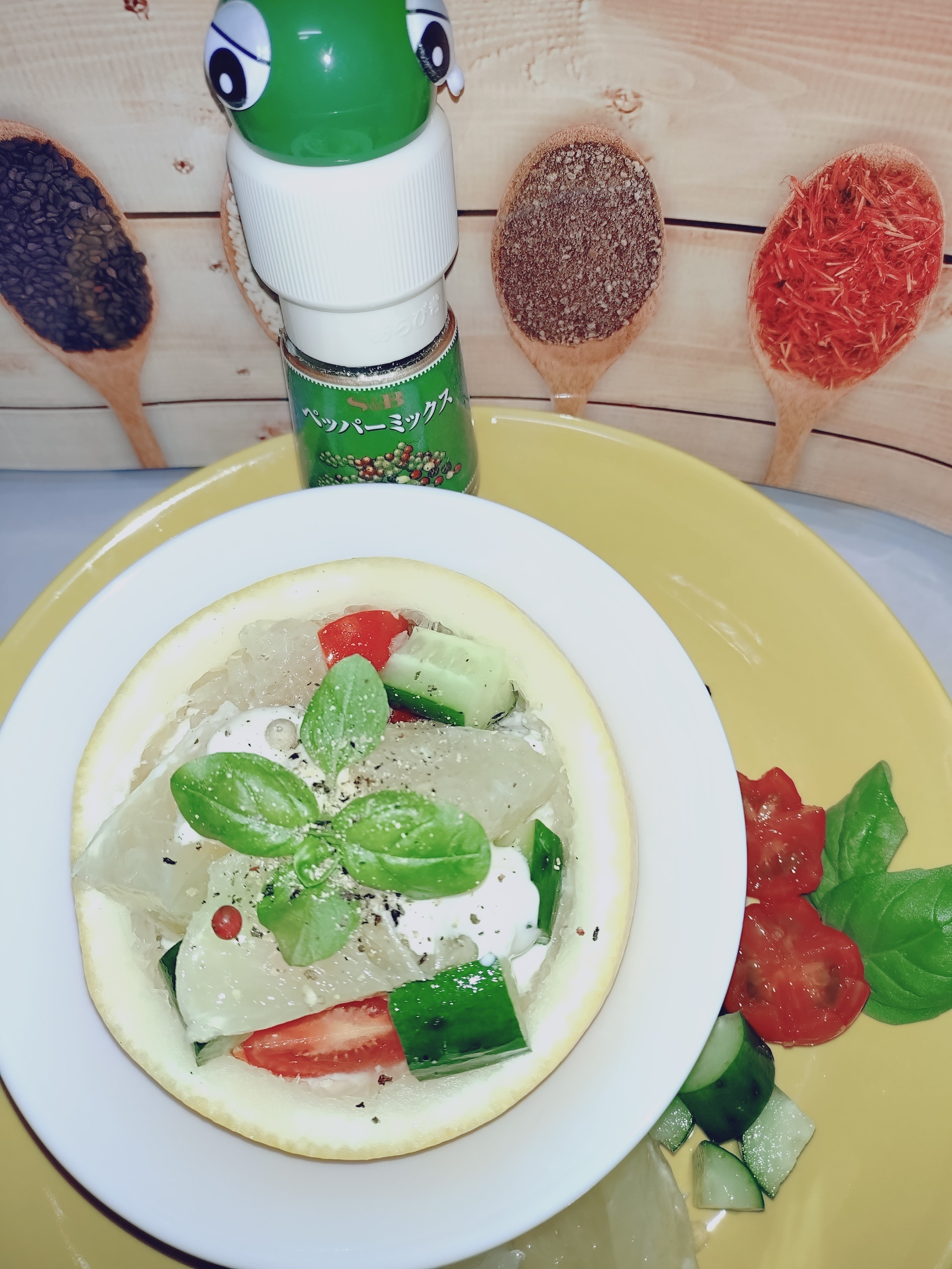 具材もグレープフルーツにきゅうり、トマト、海老と豪華な組み合わせですね(*'▽')