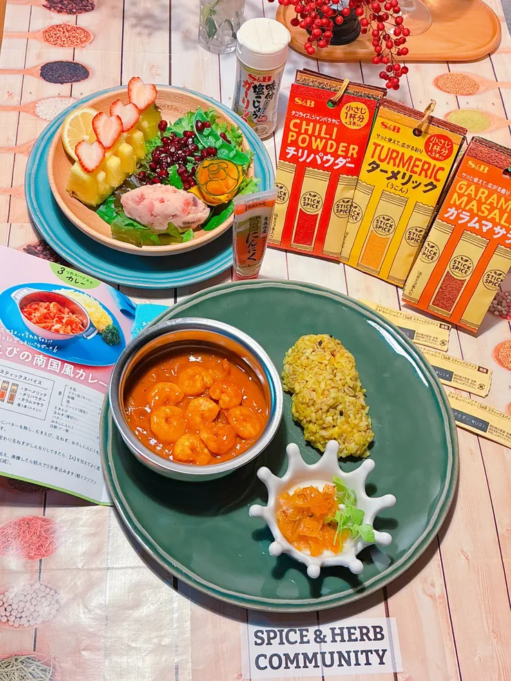 エスビー公式レシピ「えびの南国風カレー」を作ってみました。