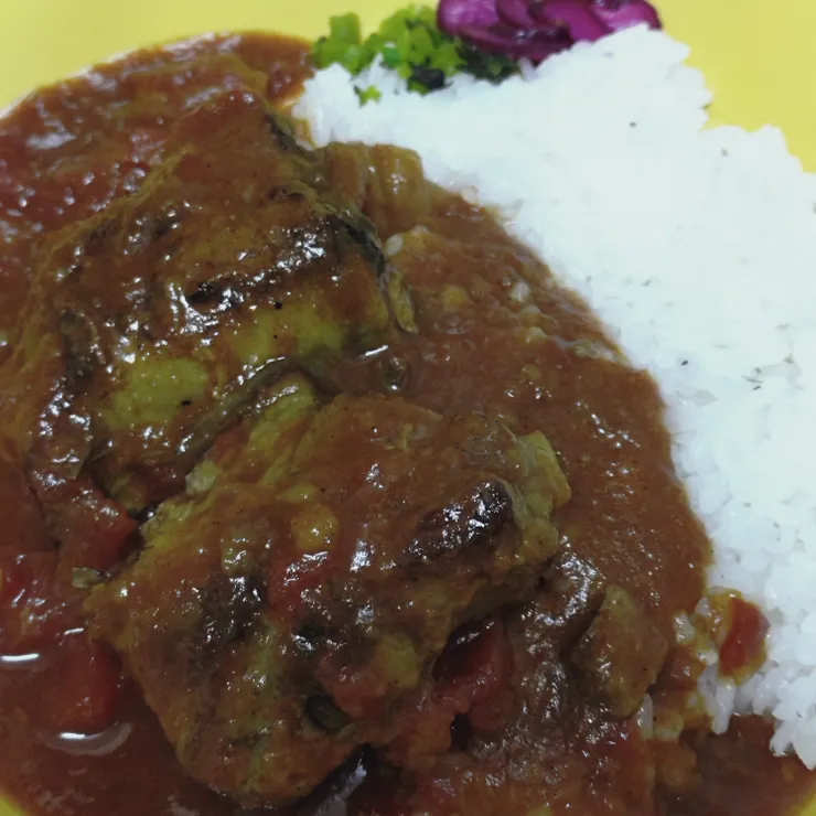 大きめの豚肉で煮込み、酸味があるカレーなんですね…