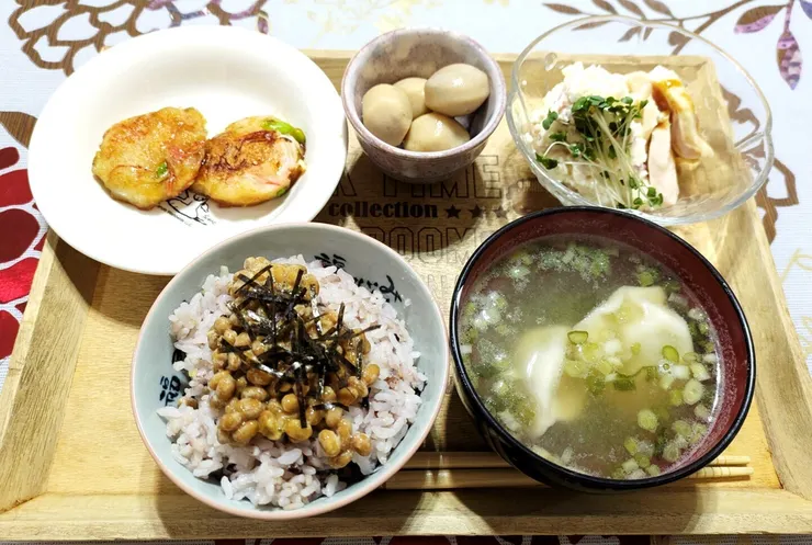大根をすりおろして水切りし→片栗粉・とろけるチーズ・カニカマ・枝豆を入れてまぜます。