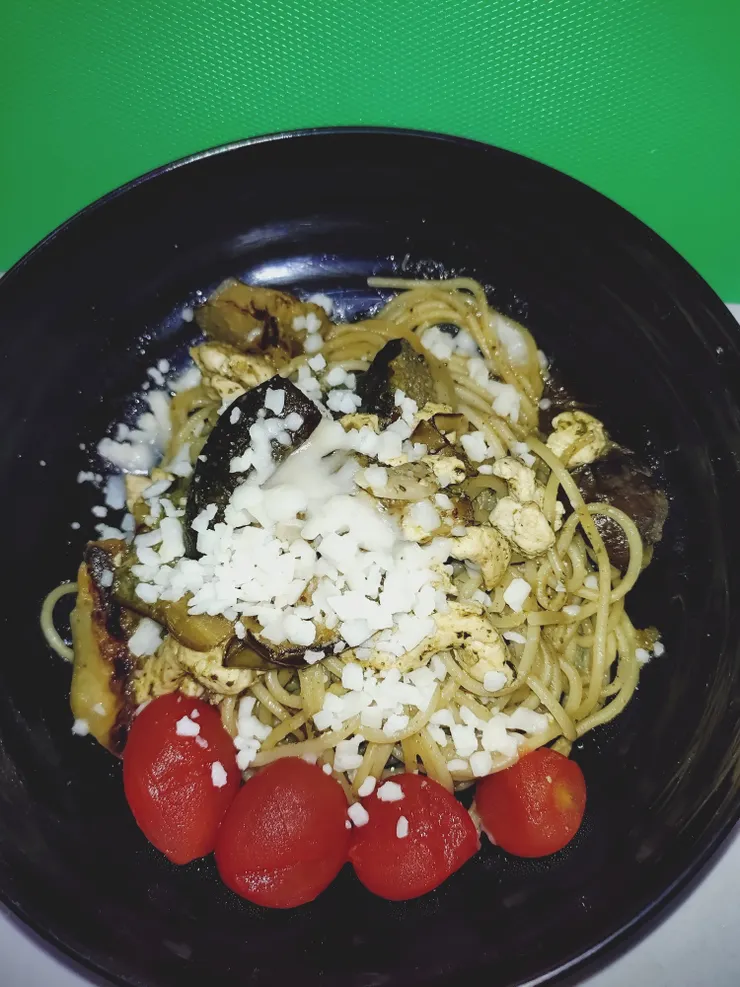 💠茄子🍆と鶏むね肉のジェノベーゼパスタ