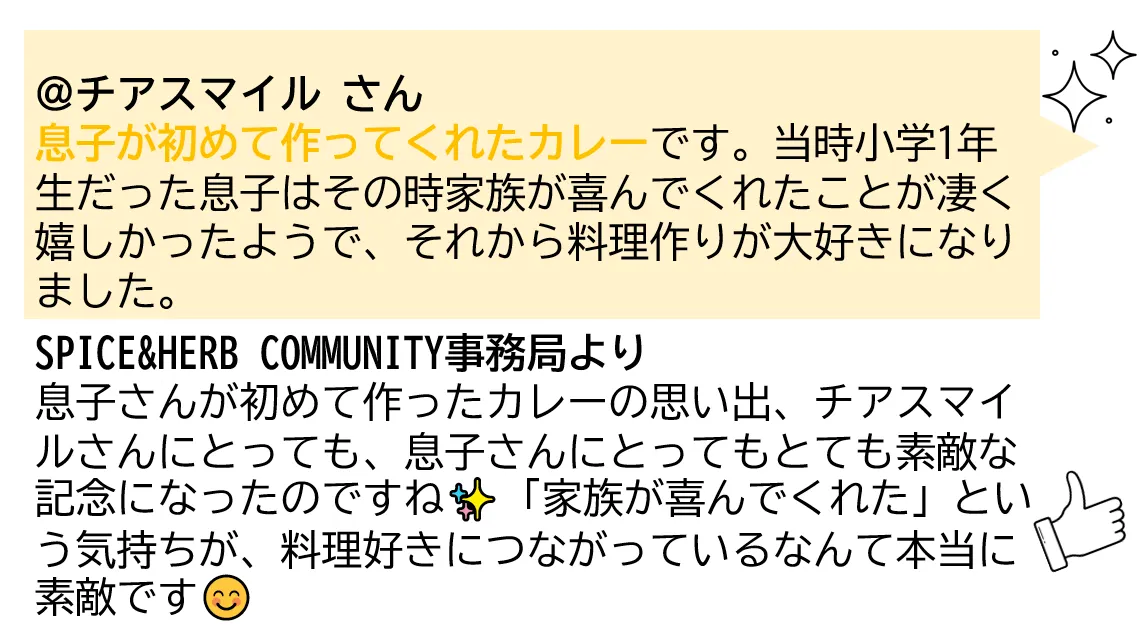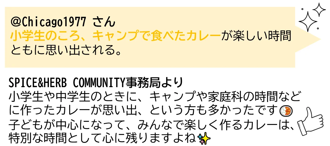 カレーには、家族や友人と過ごした時間や初めての挑戦、特別な日の記憶など、たくさんの思い出が詰まっていることを、改めて実感しました🍛