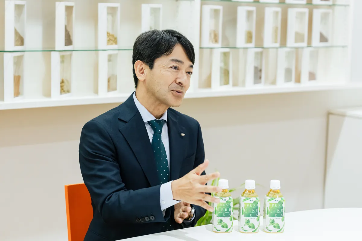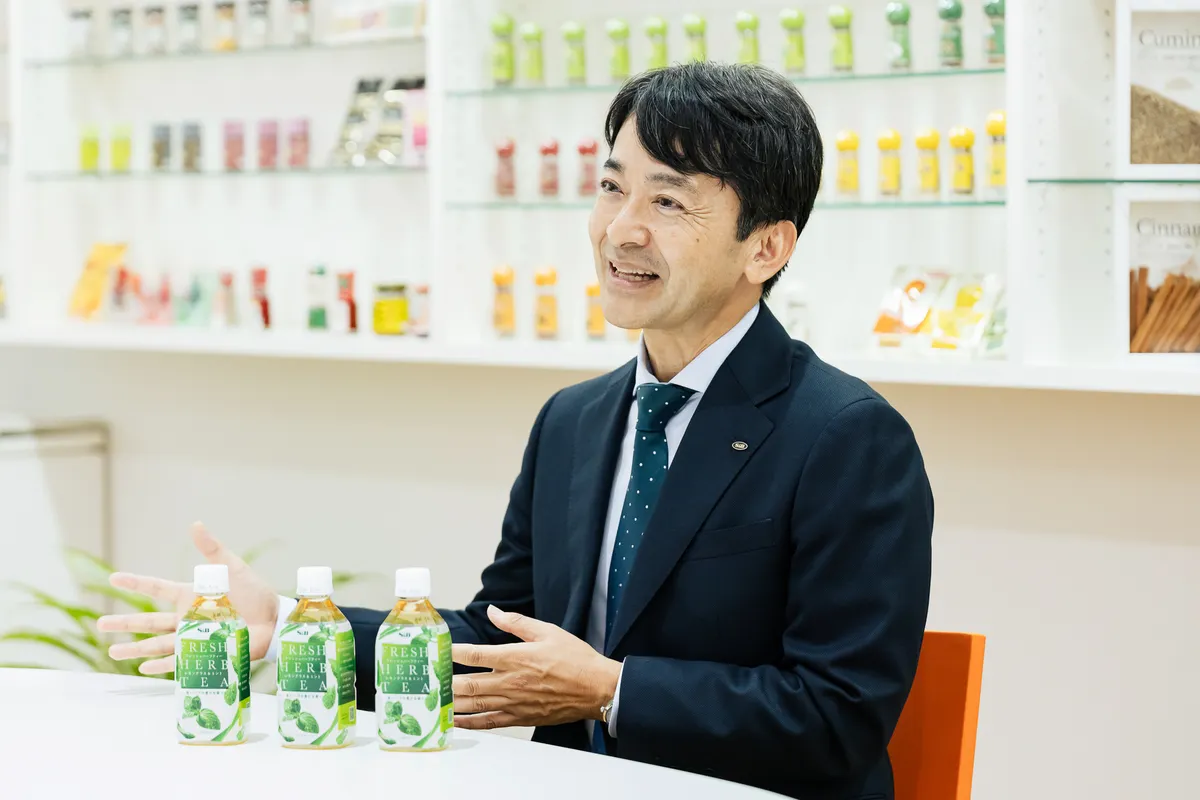 今回お話を聞いたのは、商品開発のきっかけとなったハーブ事業部 ハーブ供給ユニットの竹井亨さん。商品化の経緯から、ハーブ事業部の仕事内容、産地への想いまで幅広く語っていただきました。