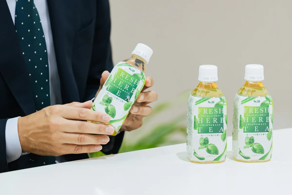 竹井さん「未活用のフレッシュハーブが出やすい時期が、ちょうどハーブの旬と重なっていたことも、おいしさを底上げしてくれたように思います。ひと口飲むと、まるで淹れたてのハーブティーのような爽やかさを感じていただけると思います。ペットボトル飲料とは思えない驚きのある商品なので、ぜひ多くの方々に味わってほしいです」
