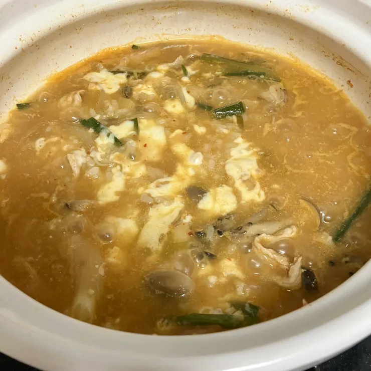 キムチの素・鶏がらスープ・味噌で味をつけました👩🍳