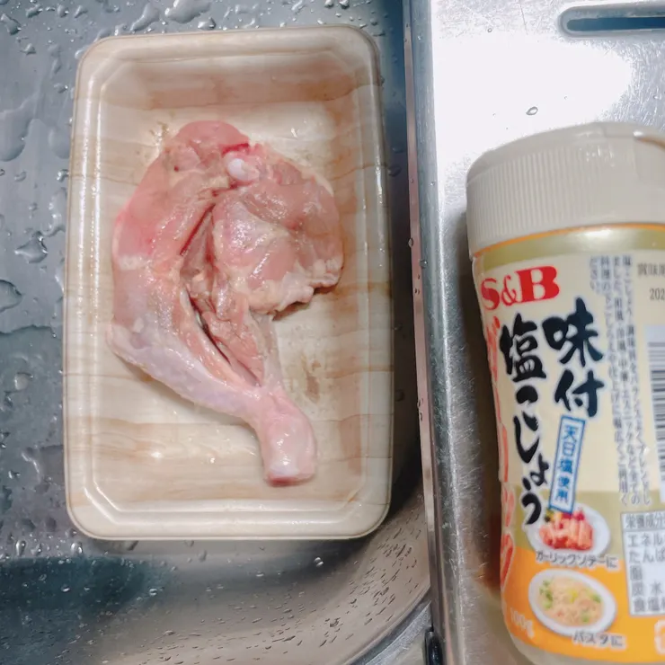 肉は、「エスビー味付き塩こしょう」で別焼きしています。
