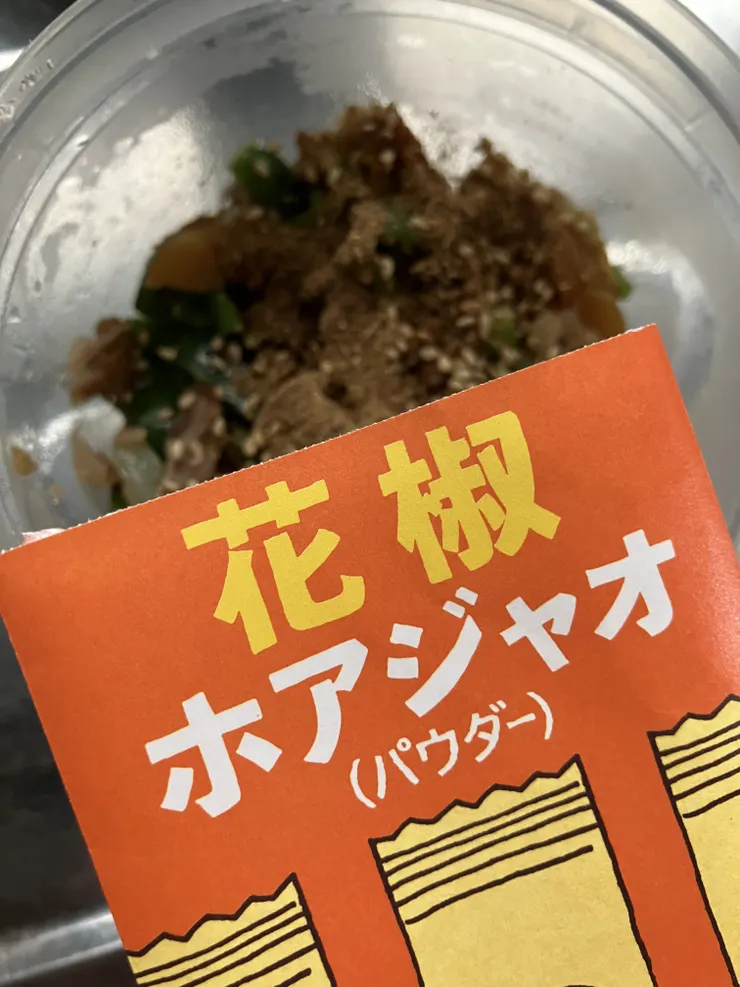 ルーローと別で、塩メインで炊いた豚バラ軟骨(パイカ)をピーマンとゴマ、五香粉で。