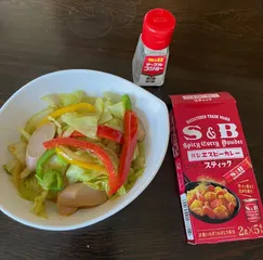 カレー味がおいしい野菜炒め 野菜炒めを作る時にカレー粉スティックを使うだけでおいしいカレー味の野菜炒めになります。カレー粉スティックは、赤缶をスティックにしたものです、赤缶がお気に入りで使ってたのですが、便利なスティックを見つけて即買いしました。1本2gがちょうど良く、ほんとに便利です。少しカレーを感じる程度に仕上げたい時には