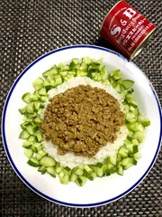 シャキシャキキュウリのドライカレー 玉ねぎみじん切りと豚ひき肉を黒胡椒をふって炒める。フライパンに出た油を拭き取りカレー粉を加える。ご飯を盛り付けたら周りにキュウリのみじん切りを置いてドライカレーをご飯の上に。黒胡椒を効かせてカレー粉で簡単ドライカレーピリッとした中にシャキシャキのキュウリがアクセントでさっぱり食べれます。