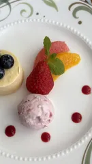 ♯2025ハーブの日 デザートにフレッツミントを添えて色綺麗 いちごと対比に。口の中もリフレッシュ