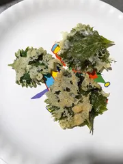 シソの天ぷら ベランダ菜園の青じそを天ぷらにして食べました😊天ぷらというより唐揚げみたいですが…サクサクでした餃子は今ハマっている柚子こしょうで😊