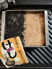 おせちにちゃれんじ 今年は松風焼きにチャレンジしました。ケシの実と黒胡麻で御重に詰めた時のおしゃれ感をプラス。かまぼこの紅白ほどではありませんが、渋めの華やかさは演出できたかな。