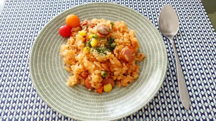 ジャンバラヤ ランチにジャンバラヤを作りましたクミン、チリパウダーを使い、彩りにパセリをパラパラ(*´▽`*)スパイシーで元気が出ます♪夏休みのランチはなにかと頭を抱えますが、ジャンバラヤは家族みんなから好評で嬉しい限り☆