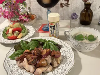 チキンステーキ イチジクのメーカーのレシピで、鶏肉を「味つき塩こしょう」とガーリックオイルでマリネし、焼きました。ソースにイチジクと赤玉ねぎ、醤油、味醂、赤ワインで煮詰めてかけるだけ。簡単でした。