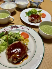NEW チーズハンバーグの夕ご飯 夕ご飯にチーズハンバーグ。インフルエンザにかかって以来簡単なものしか作る気力がなかったのですが、やっとちゃんとご飯を作る気になれました✨やっぱりハンバーグは美味しい😋家族も喜んでくれて良かったです。