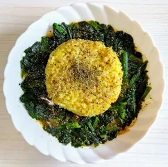 2日目の朝に、黒胡椒たっぷりのスパイシーなホウレンソウカレー、ちとかけ過ぎたかも😂