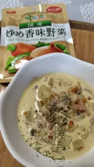 《 野菜ポトフの3段活用 》 いつもポトフを作る時は、野菜のみの時が多く、 ローレルを入れて、多めに作っています。 そんな訳で、今回も、野菜だけのポトフを。 今回の材料は、じゃが芋、人参、玉ねぎ、しめじです。 2日目は、オーガニックのペンネを加え 米粉と豆乳のシチューに。 3日目は、煮詰ま