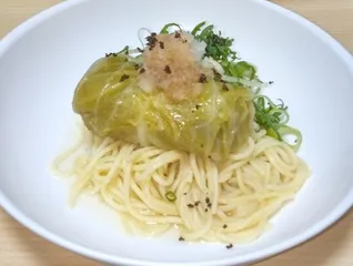 和風ロールキャベツ 肉種にブラックペッパー、ジンジャー、ブラウンマスタードシード、オールスパイス、自家製エルブドプロバンス、菜館五香粉、ナツメッグを入れてキャベツで巻いて昆布出汁で煮込み、ねぎ、大根おろし、ポン酢しょうゆ、自家製すりだねで食べる和風ロールキャベツです😋今回使ったすりだねは山椒感かなり強めに作りました。ス