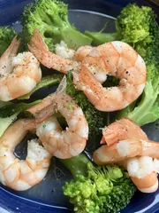 ブロッコリーとエビ クリームシチューでもいいけど、オリーブオイル、ニンニク塩で蒸し焼き熱々のうちにペッパーミックスをかけていただきました。お酒が進みます