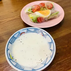 生春巻き 生春巻きのソースに、ブラックペッパーを使用してみました❣️マヨネーズと白だしを3:1、ブラックペッパー適量です。適当に思いついたレシピの割に美味しかったので、また作りたいなと思います✨😆