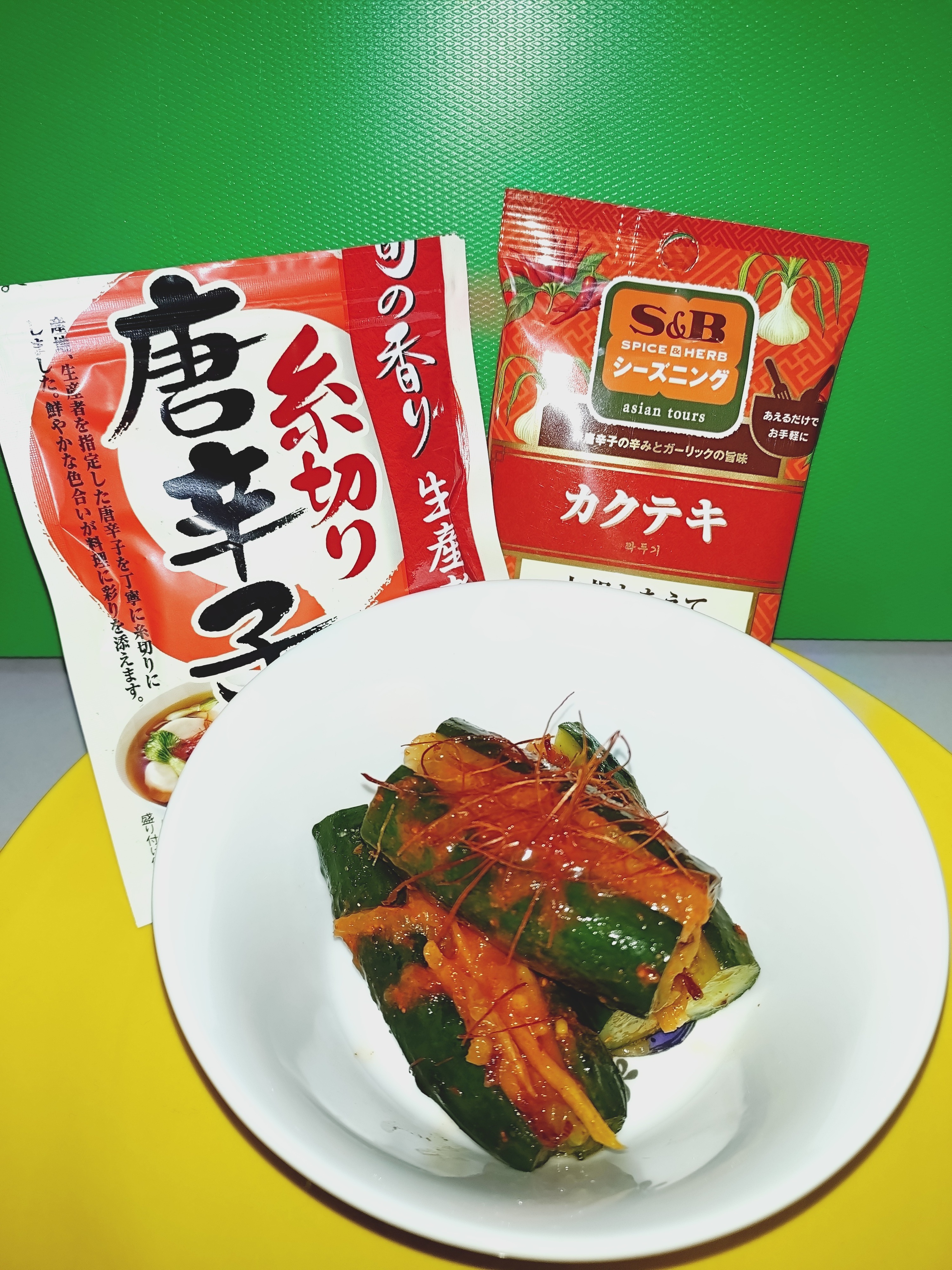 NEW 💠オイキムチ(オイソバギ)きゅうりキムチ 💠オイキムチ(オイソバギ)を作りました きゅうり🥒の間に大根、人参ニラなどが挟まれたオイキムチ(オイソバギ)を作りました■材料○きゅうり 3本○大根少し 千切り○SBカクテキシーズニング 小袋2○SB糸切り唐辛子 少々○塩 少々 大根、人参の千切りはスーパーにある大根、パプリカ、